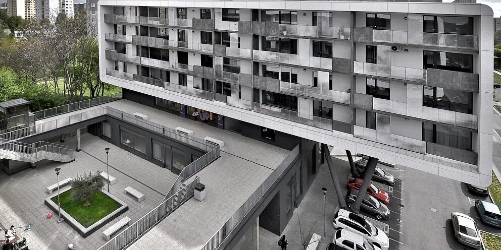 Bratislava – SkyBox Polyfunkčný objekt SkyBox tvoria 4 rovnaké obytné hranoly s átriom v strede. Vstupný systém bol navrhnutý video VOP pre 128 bytových jednotiek. Vstupný panel: SinthesiS2Systém: Video VOPPrístupový systém: iPASSAN, PASSAN Zdroj: best-slovakia.sk