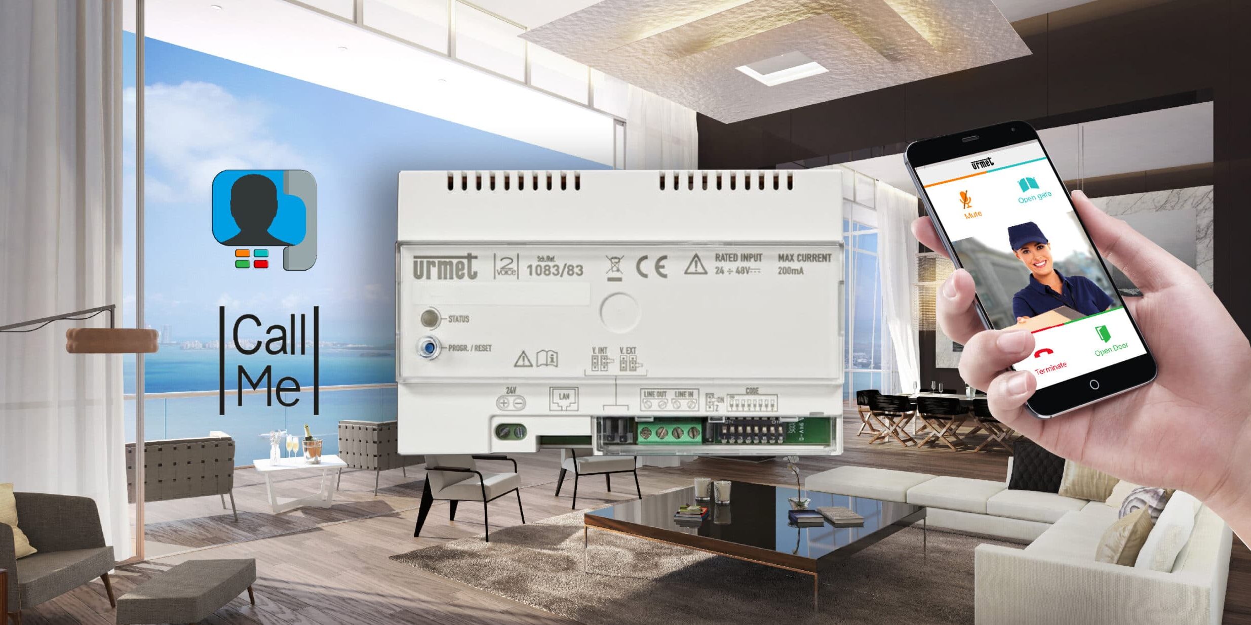 Zariadenie na presmerovanie hovorov pre viacerých používateľov pre 2Voice systémy. Presmeruje hovory zo vstupného panela na mobilné zariadenie. Na mobilnom zariadení musí byť nainštalovaná aplikácia CallMe (k dispozícii pre Android a iOS). Na zariadenie na presmerovanie hovorov s viacerými používateľmi (1083/83) je potrebné pripojenie na internet. Každé zariadenie 1083/83 môže spravovať až 127 apartmánov. Viac zariadení je možné spravovať v jednej stúpačke, napr. pre každé rozhranie stúpačky 1083/50 (4 stupačku) alebo 1083/59 (2 stupačku) Gateway IPerCom je potrebné jedno zariadenie 1083/83 a postupné zvyšovanie počtu bytov o 127 až 254 … 381 … Zariadenie na presmerovanie hovorov s viacerými používateľmi je centrálne a vzdialene spravované pomocou softvéru CallMe managera. To zaisťuje, že správca budovy môže pridávať a mazať používateľov. Úplne externá inštalácia t.j. nemusíte vstupovať do bytu.